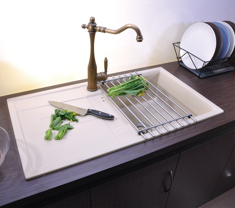 B011508 Single Basin Quartz Kitchen Sink with Serving Board
